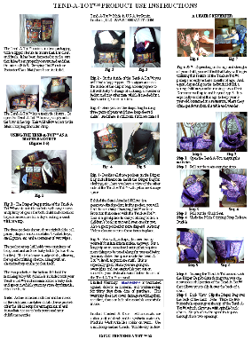 | ATTENTION! USE FROM INFANCY THRU 3+ YEARS OF AGE! THE FEATURES OF THE TEND-A-TOT ARE DESIGNED TO ALLOW USE WITH AN INFANT AND SMALL CHILD AND THEN "GROW RIGHT ALONG WITH BABY", PROVIDING YEARS OF SERVICE. INFANT/SMALLER CHILD: PLACE PILLOW IN "DOWN" POSITION AND THE FOLDED DIAPER PAD ON SEAT BOTTOM. LARGER CHILD: TIE PILLOW IN "UP" POSITION. NO NEED FOR PADDING THE SEAT! SURROUND YOUR LITTLE ONE WITH A FAMILIAR PATTERN AND "FRAGRANCE" - RIGHT FROM THE START!!! THIS UNIQUE BABY DIAPER BAG TOTE BECOMES AS NECESSARY AS THAT FAVORITE BLANKET OR TOY. WARNING: "DON'T LEAVE THE HOUSE WITHOUT IT!!! Contact: elizabeth@tendatot.com |